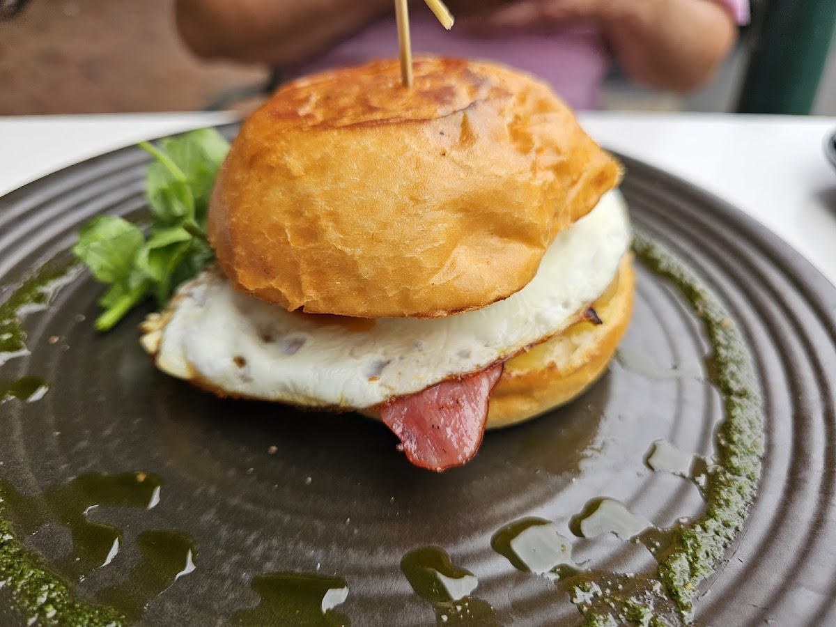 The menu at The Exchange features an array of scrumptious offerings, perfect for any time of the day. Start your morning with the heavenly Loaded Banana Bread, toasted to perfection and adorned with mascarpone cream, poached pear, and a sprinkle of candied walnuts—it's a treat you won’t soon forget. For something classic, try the Bacon & Egg Roll, where crispy bacon meets a runny fried egg, all nestled in a toasted potato bun and drizzled with smoky peach BBQ sauce. Perfectly satisfying!